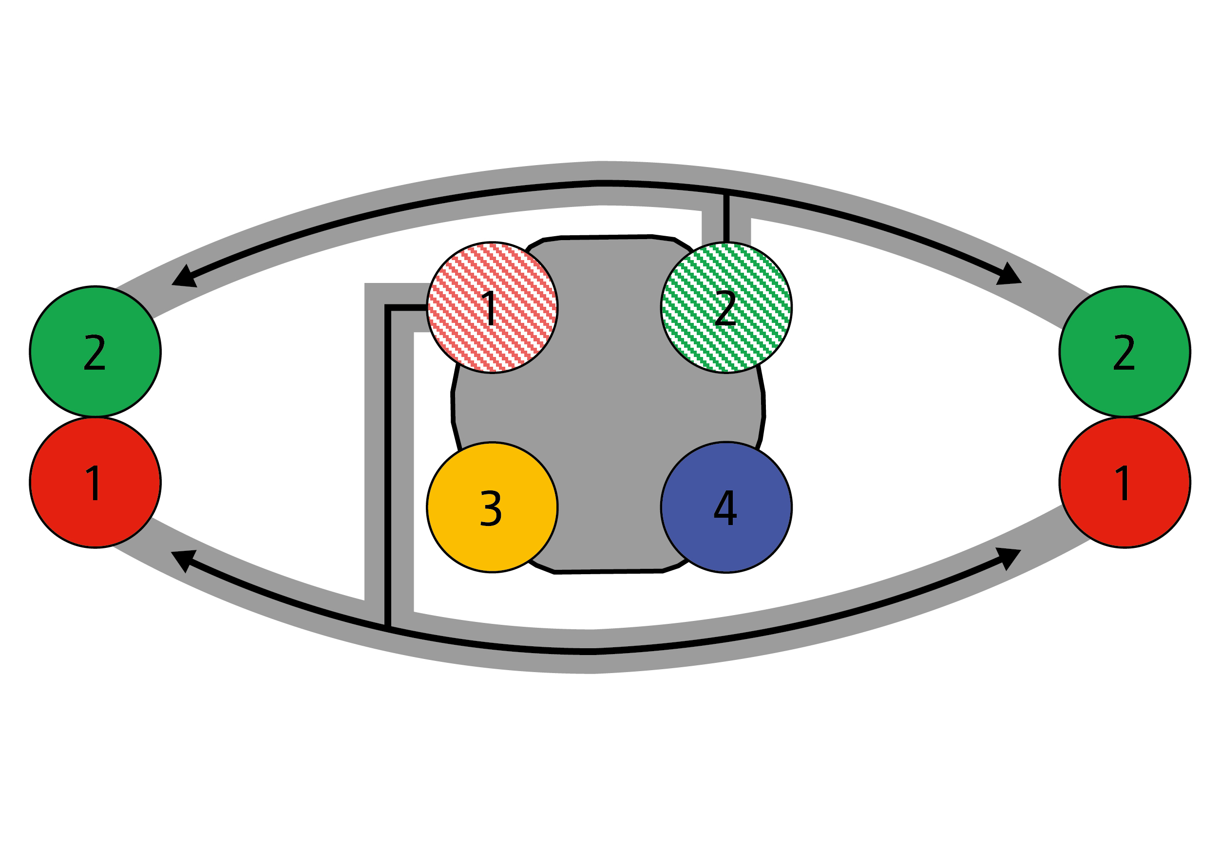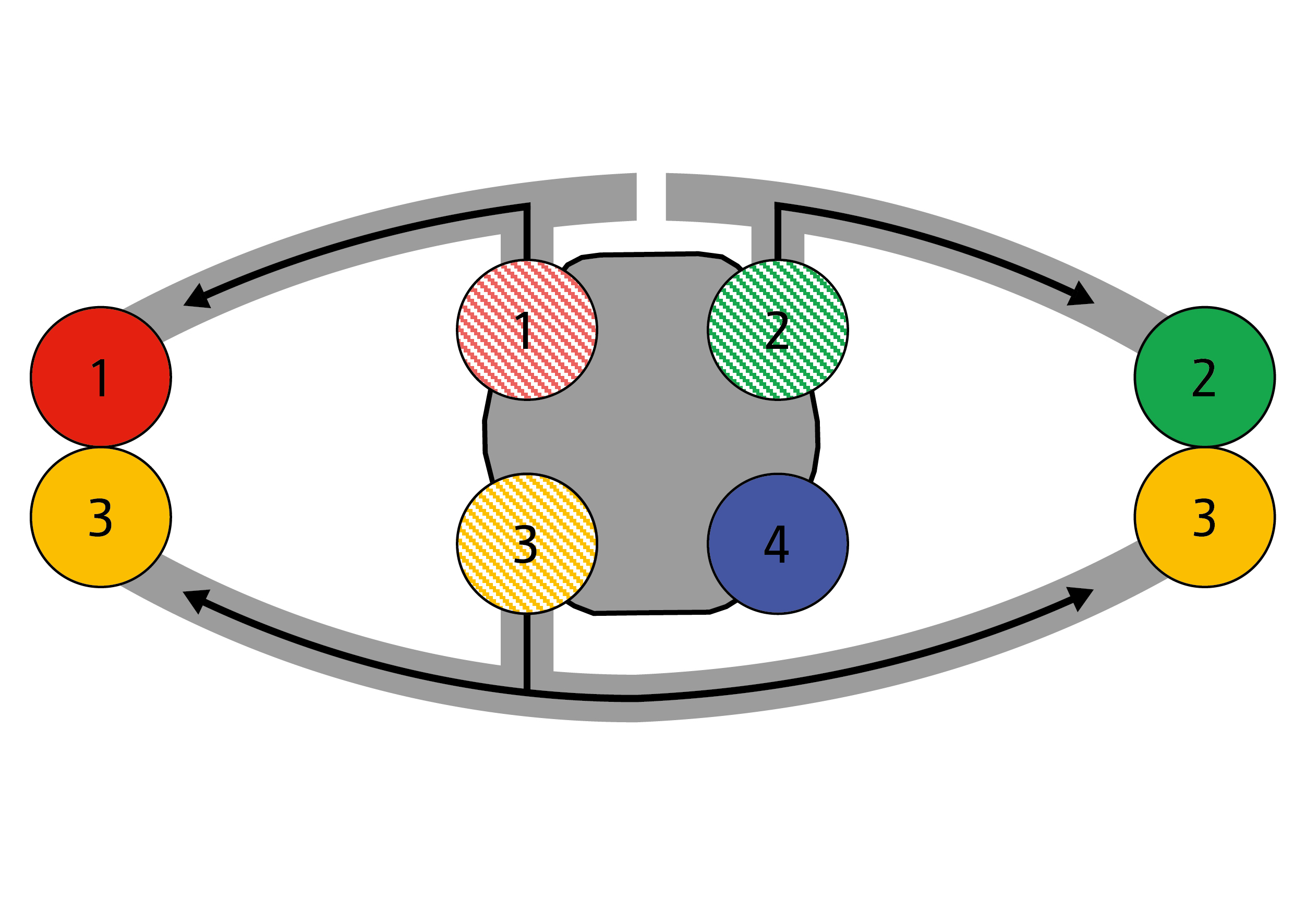 Im Gegensatz zum einfachen Verlagerungssatz bietet AmaSelect twin „2-1-2“ zusätzlich eine weitere Verlagerung: Der Volumenstrom von Position 3 wird auf 2 Düsen mit 25-cm-Abstand aufgeteilt. Position 4 bleibt wie gewohnt auf 50 cm verfügbar. Damit steht neben der speziellen Verlagerung für die Bandapplikation ein weiterer 25-cm-Düsenabstand für die flächige Applikation zur Verfügung. Auch hier bleiben der automatische Düsenwechsel und die Kombination von Position 3 und 4 erhalten, sodass variable Fahrgeschwindigkeiten und Ausbringmengen sowie die Kurvenkompensation vollumfänglich möglich sind.