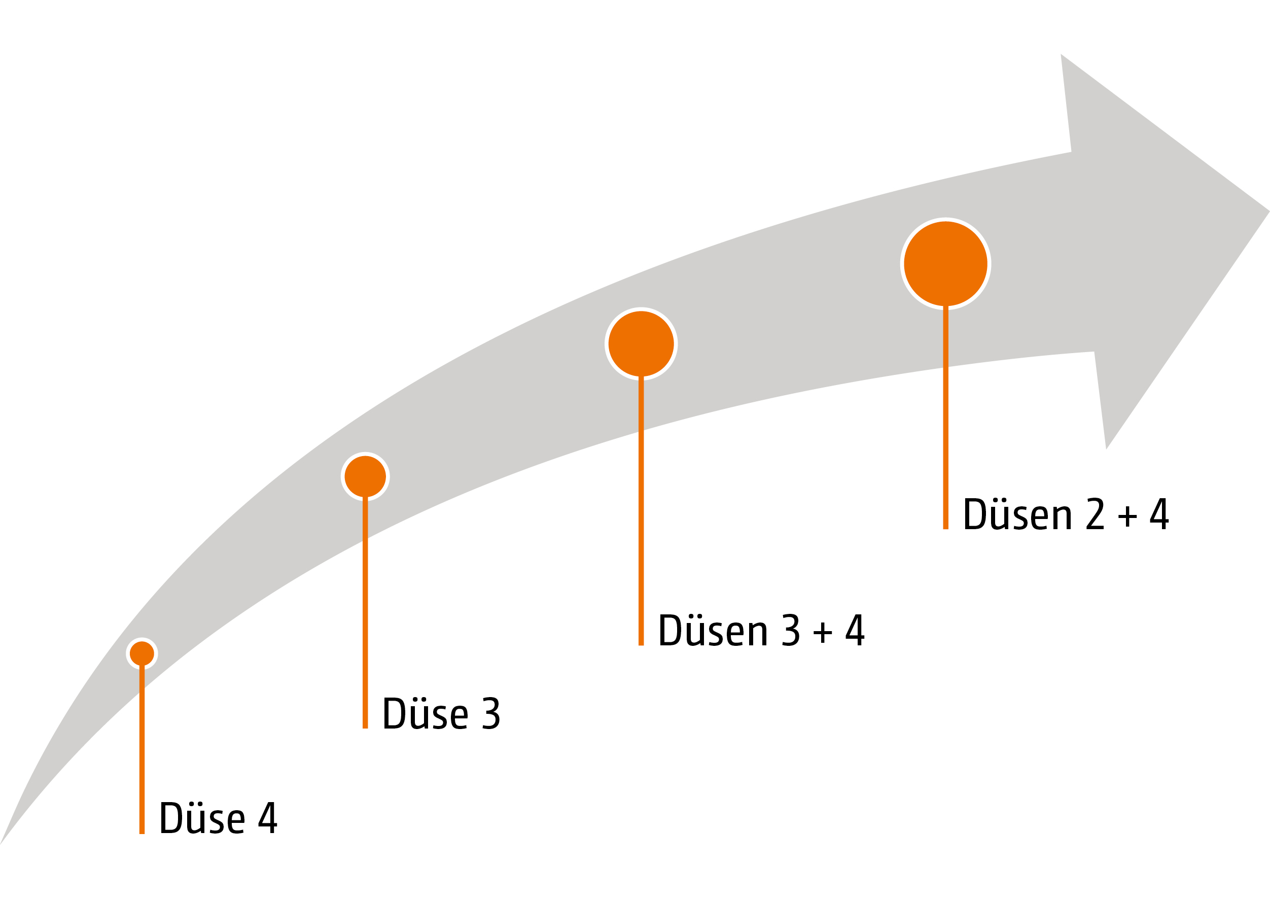 - Für jede Anwendung die optimale Düsenkonfiguration – ohne manuellen Düsenwechsel