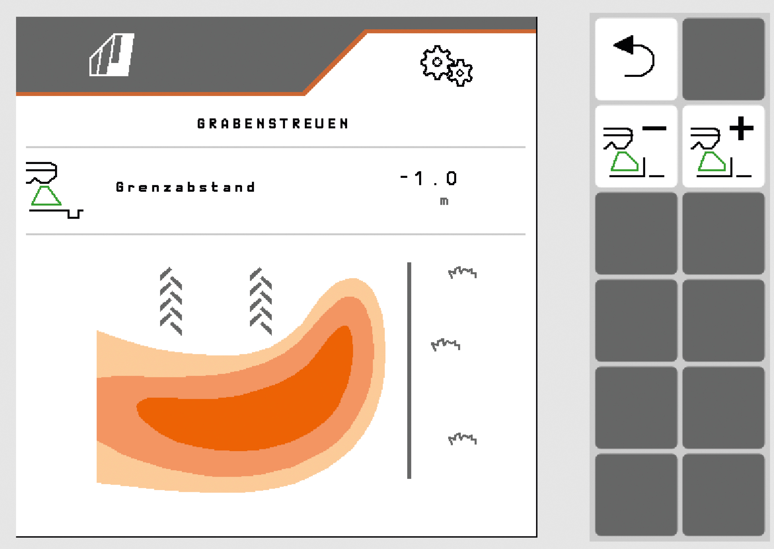 Insbesondere beim Grabenstreuen müssen die gesetzlich vorgeschriebenen Abstände zum Gewässer eingehalten werden, die je nach Standort variieren. Hier bietet die variable Eingabe des Grenzabstands in Metern eine praxistaugliche und präzise Einhaltung der Vorschriften bei gleichzeitig bestmöglichen Streugebnissen.