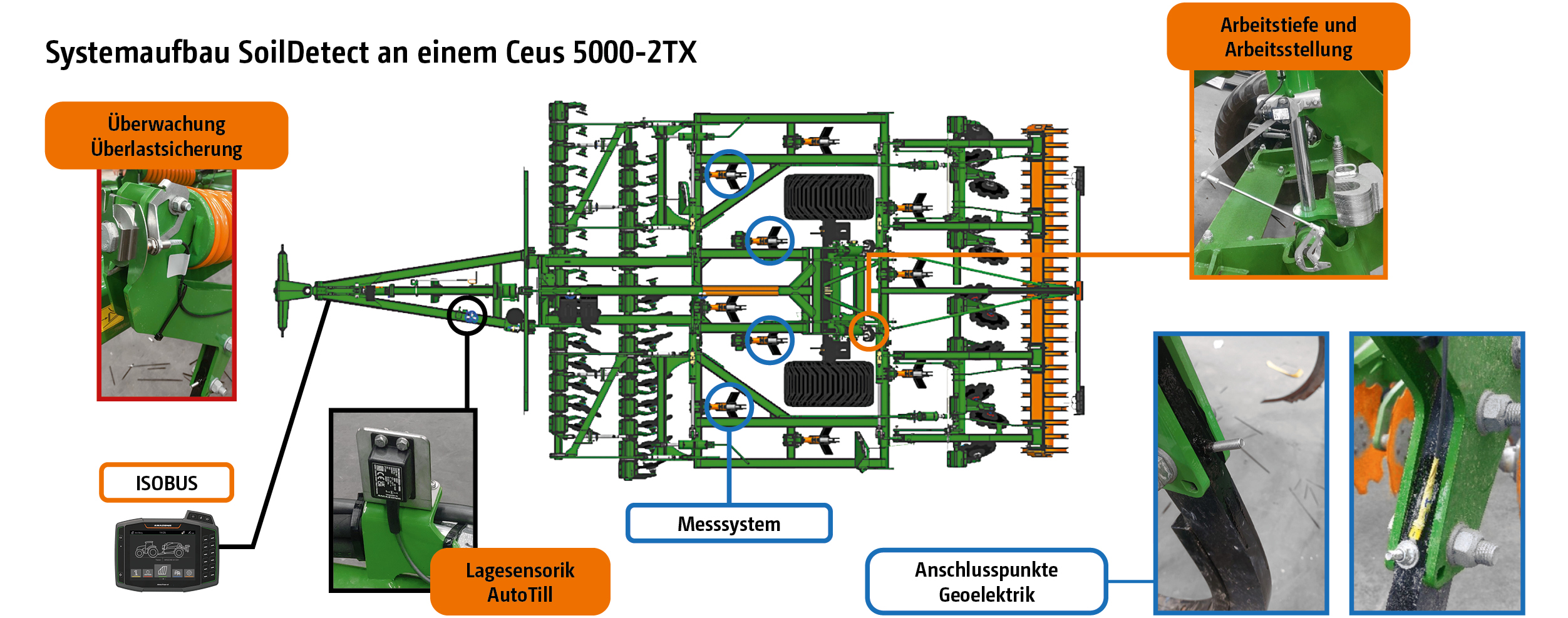 Beim System SoilDetect werden einzelne AutoTill-Sensoren, wie Arbeitstiefensensor, Überlastsicherungs- und Lagesensor mit der geoelektrischen Bodenleitfähigkeitsmessung kombiniert. Hierzu wird ein Strom über einzelne Zinken in den Boden geleitet. Zum Einsatz kommt die 4-Punkt-Anordnung. Hierzu werden 2 Elektrodenpaare verwendet.