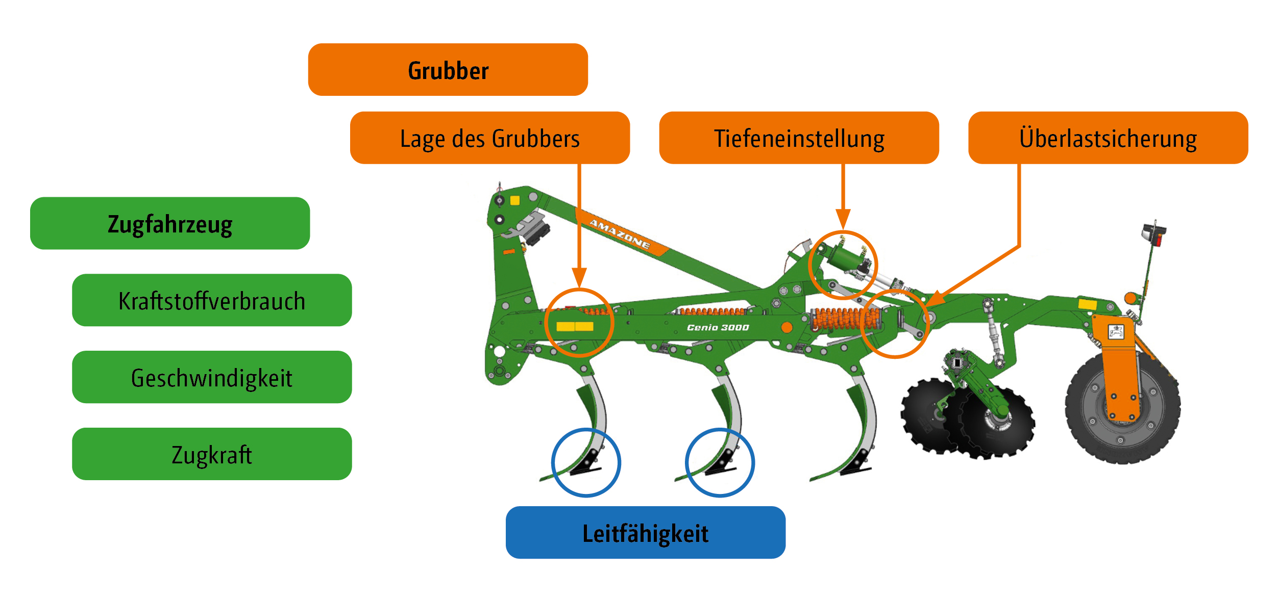 Das System AutoTill (Neuheit bei der Agritechnica 2023) beinhaltet verschiedene Sensoren für die wesentlichen Baugruppen und Prozesse des Grubbers. Neben den Sensoren des Grubbers liefert auch das Zugfahrzeug Daten wie z. B. Fahrgeschwindigkeit, Kraftstoffverbrauch, Schlupf oder Zugkraft, welche vom Projektpartner exatrek GmbH erfasst und bereitgestellt werden. Der Austausch bzw. die Kommunikation von Traktor und Gerät läuft über die ISOBUS-Schnittstelle. Das Sammeln von Daten, die Auswertung und Nutzung fokussiert sich bei AutoTill direkt auf den Arbeitsprozess. Während der Bodenbearbeitung mit dem Grubber im Feld, lassen sich darüber hinaus aber noch mehr Daten erfassen und sammeln, die nachgelagerte Arbeitsschritte unterstützen und optimieren können. So bietet AutoTill die sensorische Grundlage für SoilDetect, bei dem vor allem die geoelektrische Bodenleitfähigkeitsmessung während des Arbeitsgangs im Vordergrund steht. Die Geoelektrik wird vom Projektpartner Field-Expert GmbH entwickelt. Die Datenanalyse erfolgt mit AI-Methoden durch den Projektpartner Hochschule Osnabrück.