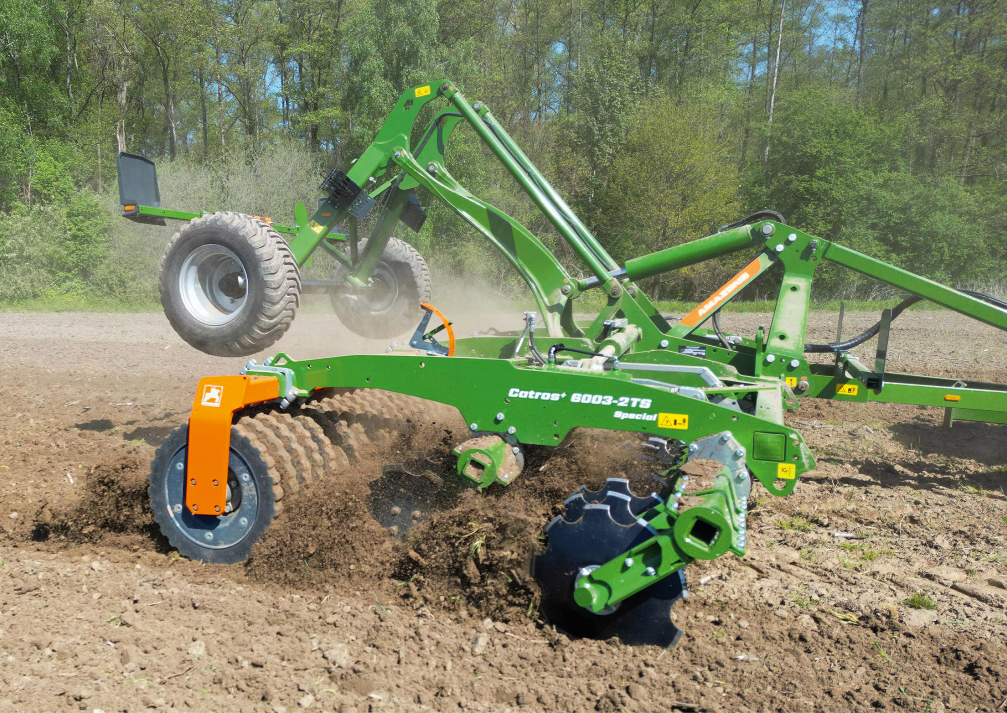 Mit der neuen Catros+ 6003-2TS Special bietet AMAZONE eine gewichtsoptimierte und preisgünstige Ausstattungsvariante im Bereich der angehängten Kompaktscheibeneggen mit einer Arbeitsbreite von 6 m an.