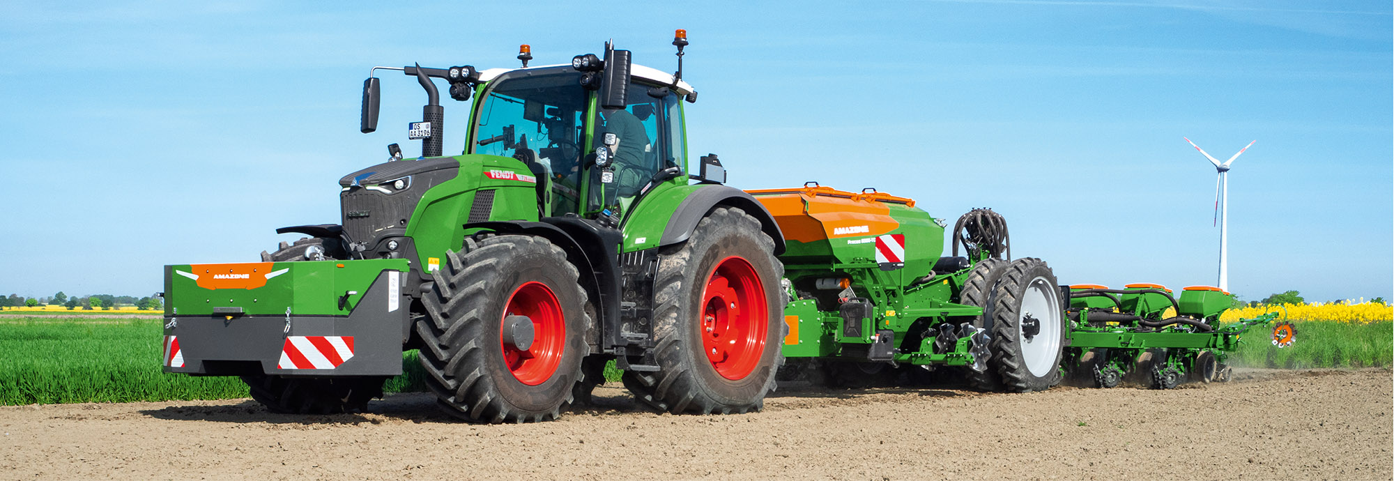Für Maschinen mit engeren Reihenabständen von 45 cm und 50 cm bietet AMAZONE die angehängten Einzelkorn-Sämaschinen zur Frühjahrssaison 2025 mit einer Zwillingsbereifung an.