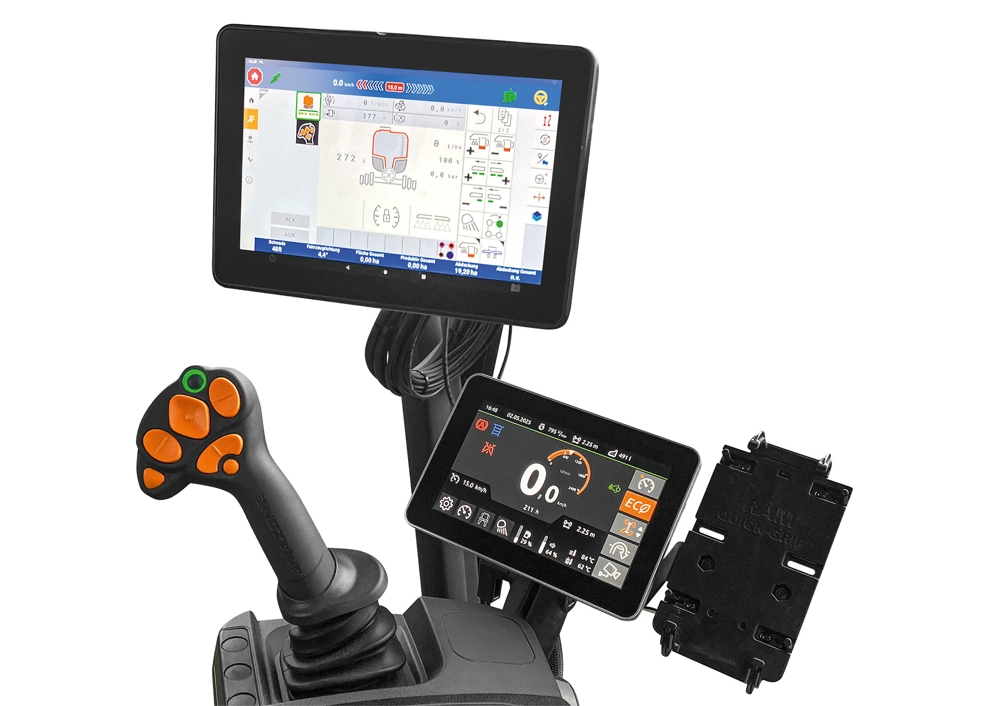 Das Lenksystem kann entweder für das Egnos-Signal oder für die RTK-Genauigkeit vorgerüstet werden. Dem Kunden steht der volle Funktionsumfang des Trimble-Terminals inklusive aller erforderlichen Freischaltungen zur Verfügung. Dazu zählen beispielsweise VariableRateControl für den teilflächenspezifischen Pflanzenschutzeinsatz oder Section Control für die Nutzung der Einzeldüsenschaltung mit bis zu 96 Teilbreiten. Zusätzlich besteht die Möglichkeit der drahtlosen Auftragsverwaltung und Fernüberwachung der Maschine durch die Nutzung der Trimble Ag Software.