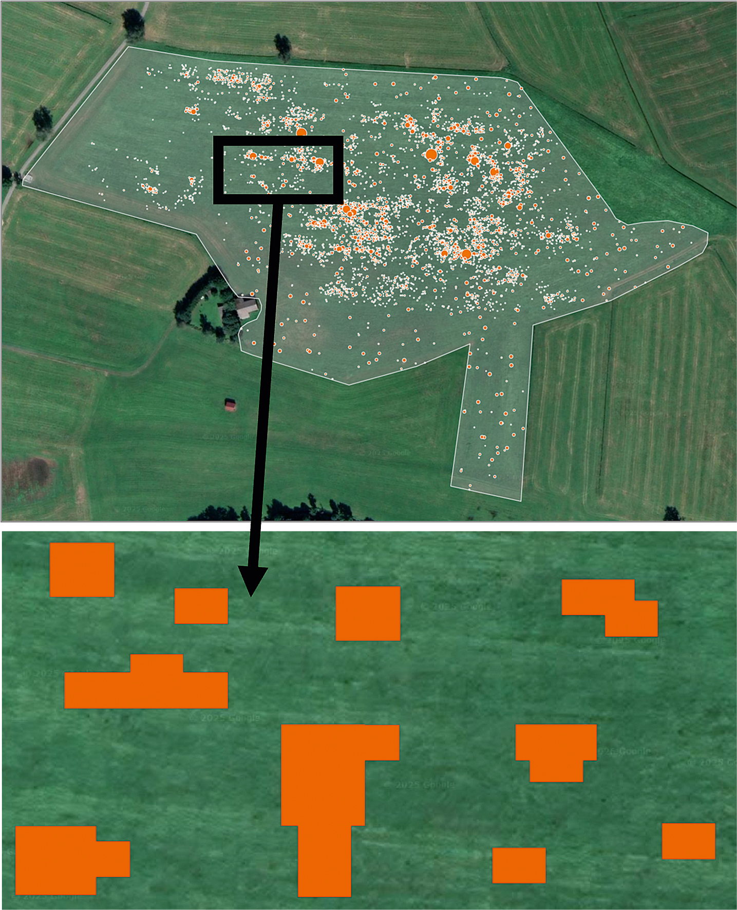Zusätzlich wird dem Landwirt ermöglicht, eine agronomische Bewertung mit potenziell behandlungswürdigen Teilflächen vor der Übertragung zur Feldspritze vorzunehmen. Die Behandlung erfolgt nach guter fachlicher Praxis zeitversetzt zum Mähen, damit die Ampferpflanzen Blattmasse bilden können.