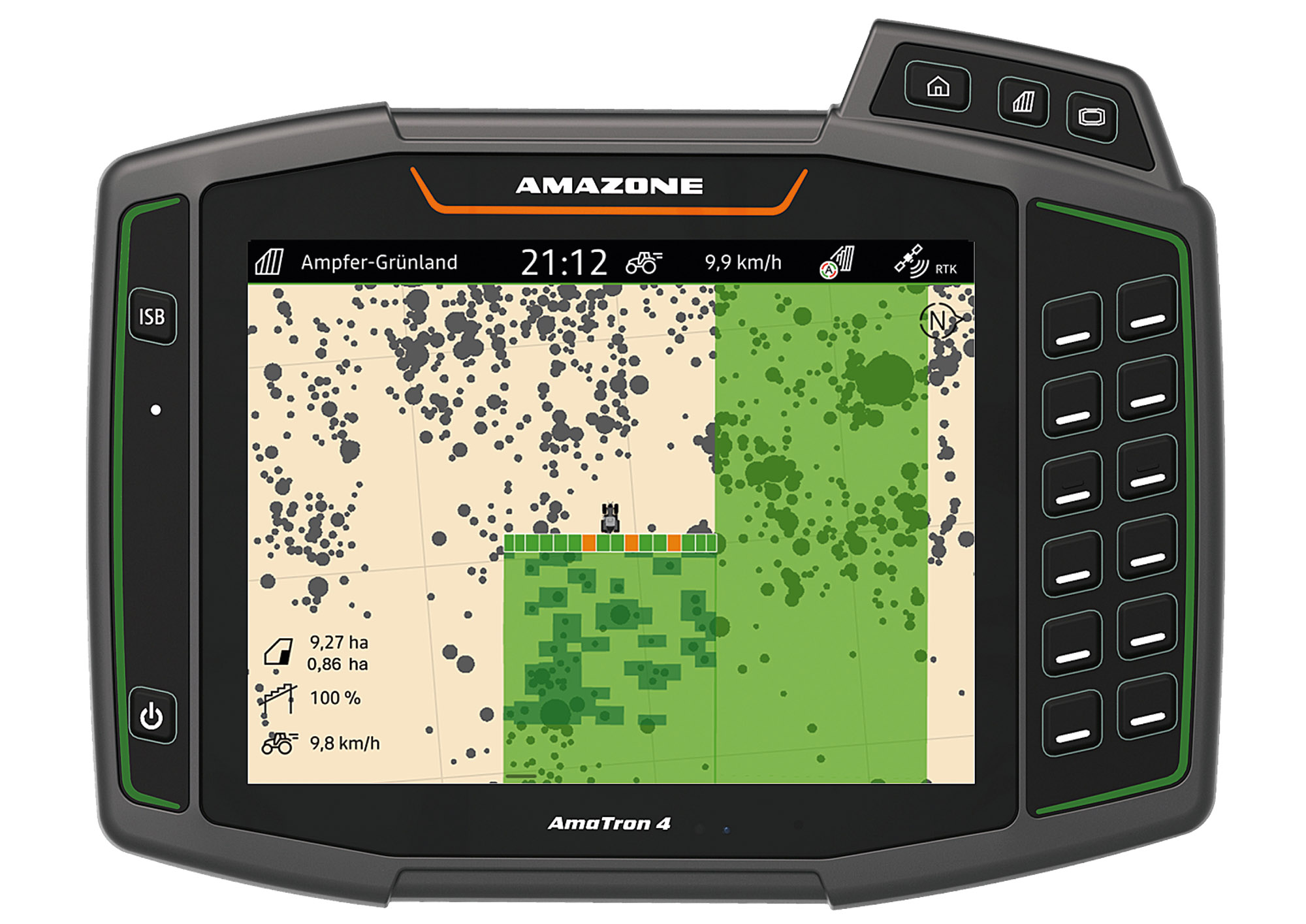 Die Spot-Karte wird vor der Anwendung per App AmaTron Share oder zukünftig auch direkt cloudbasiert via AmaConnect an den AmaTron 4 gesendet. Nun kann zum agronomisch optimalen Zeitpunkt eine gezielte Spotapplikation mit der Feldspritze erfolgen.