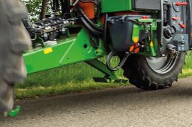 Der in den Rahmen integrierte, höhenverstellbare Stützfuß lässt sich komfortabel hydraulisch ein- und ausklappen und erleichtert den Anbau an den Traktor.