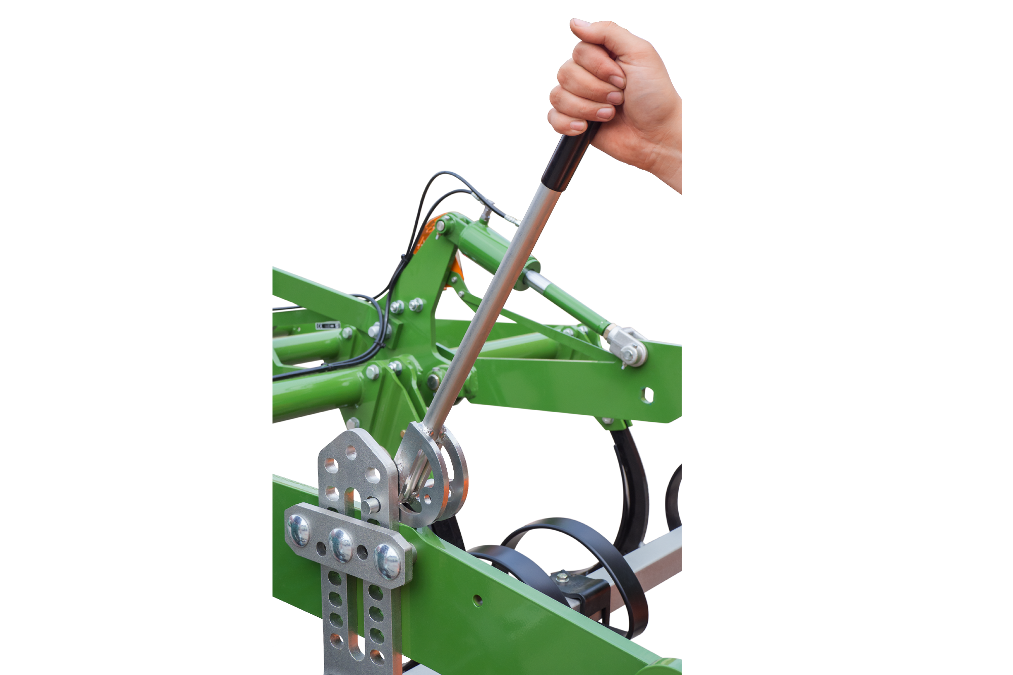 Die Einstellung der Einebnungseinheit kann bei starren Maschinen optional manuell über ein Lochraster erfolgen oder automatisch per LevelControl. Die automatische Anpassung der Einebnungseinheit mit LevelControl bietet höchsten Komfort und ist für geklappte Maschinen serienmäßig.