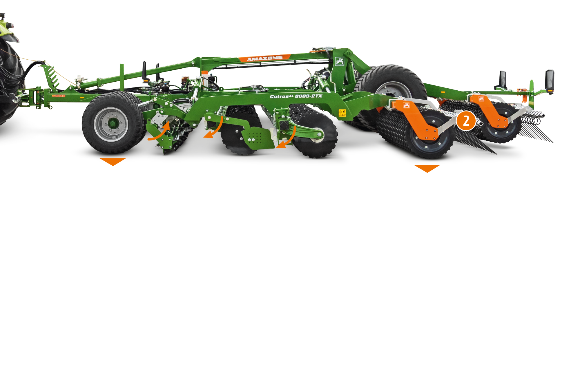 - Neben der unabhängigen Einstellung von Vorwerkzeug und Scheiben, bleibt bei einer Arbeitstiefenveränderung die Einstellung eines Heckstriegels auch unverändert