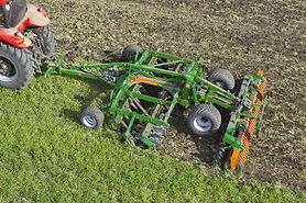 Das integrierte Mittelfahrwerk, ausgestattet mit der Bereifung 550/45-22,5 bzw. 400/60-22,5, sorgt für eine hohe Wendigkeit der Maschine im Feld und auch auf der Straße. Die Position des Fahrwerks garantiert eine gute Gewichtsverteilung und erlaubt den Einsatz aller AMAZONE Nachlaufwalzen, um so je nach Bodenverhältnissen die passende Nachlaufwalze einsetzen zu können.