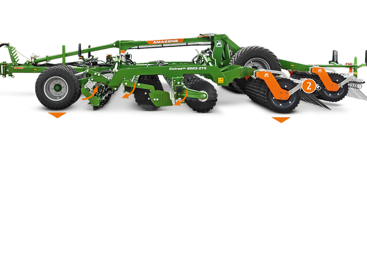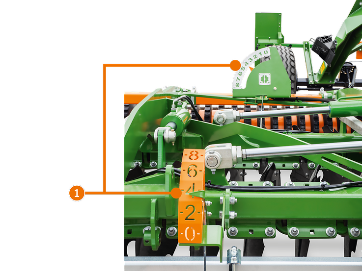 - Neben der unabhängigen Einstellung von Vorwerkzeug und Scheiben, bleibt bei einer Arbeitstiefenveränderung die Einstellung eines Heckstriegels auch unverändert