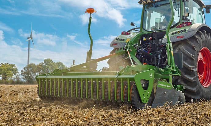Sehr einfacher, schneller und werkzeugloser Wechsel des Bodenbearbeitungsmaschine in einer Säkombination dank des Schnellkuppelsystems QuickLink. Hydraulische Arbeitstiefenverstellung als Wahlausstattung.