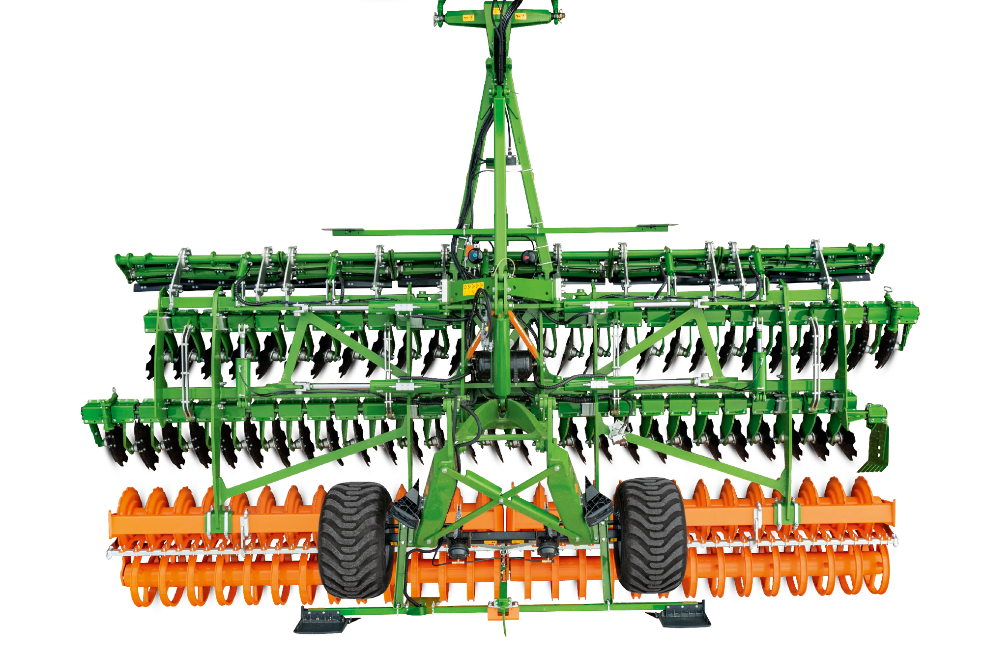 Zur Grundausstattung der Anhängemaschinen Catros-2TS mit Arbeitsbreiten von 4 bis 7 m gehört das hinter der Maschine liegene Schwenkfahrwerk. Das Gewicht des Fahrwerks kann bei schweren Böden für einen besseren Einzug genutzt werden. Darüber hinaus kann das TS-Fahrwerk als Schwingungstilgung unter Extrembedingungen dienen. Für das Wenden am Vorgewende wird es allerdings nicht benötigt. Die Maschine kann problemlos auf der Walze drehen.