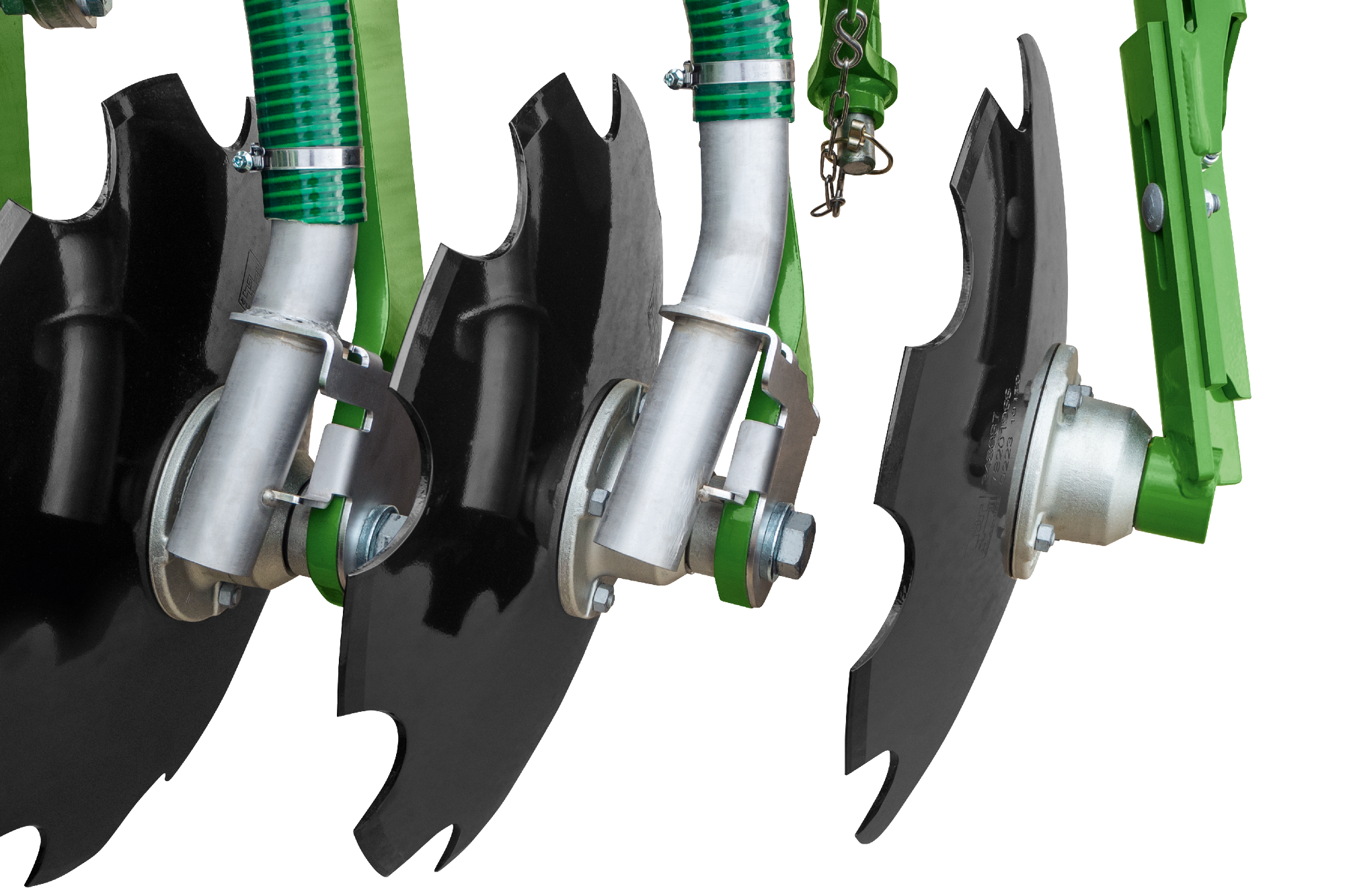 Die Catros pro sind mit dem SynCult-Gülleverteiler DosiMat DMX der Firma Vogelsang kombinierbar. Diese zeichnet sich durch hohe Ausbringmengen von bis zu 10.000 l/min und einer konstant hohen Verteilgenauigkeit unabhängig von der Durchflussmenge aus. Auf dem Adapterrahmen sind der Verteiler und die Verschlauchung des Güllesystems bis zur ersten Scheibenreihe der Catros fest montiert. Die Montage des Gülleverteilers und der Verschlauchung erfolgt seitens AMAZONE direkt ab Werk.