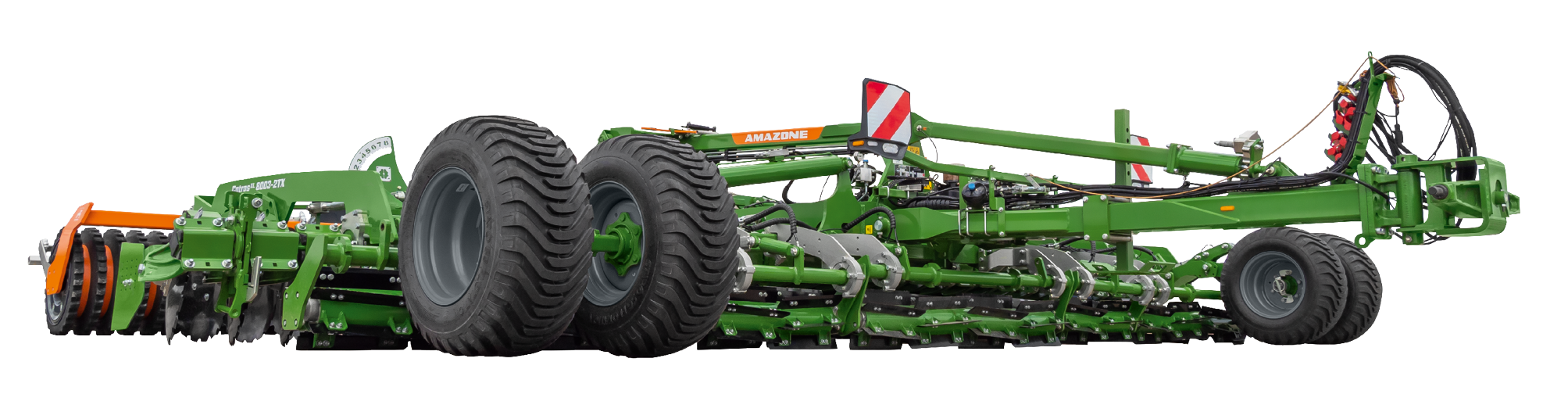 Durch die Messerwalze vor der AMAZONE Kompaktscheibenegge wird ein Maximum an Flexibilität in der Bodenbearbeitung erreicht. Die Messerwalze ermöglicht eine extrem flache Bodenbearbeitung bei gleichzeitiger Zerkleinerung der Stoppeln, zum Beispiel während der ersten Stoppelbearbeitung im Raps. Die Messerwalze ist aber auch sehr gut geeignet für das Arbeiten in hohen Zwischenfruchtbeständen, Körnermaisstoppeln oder Sonnenblumenstoppeln. Insbesondere lange Stoppeln werden quer zur Fahrtrichtung geschnitten und dann mit dem nachfolgenden Scheibenfeld eingearbeitet.