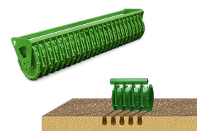 Die Trapezringwalze TRW sorgt mit ihren Trapezringen für eine streifenweise Rückverfestigung. Durch ihre gute Tragfähigkeit wird auf leichten Böden ein zu tiefes Einsinken der Trapezringe verhindert.