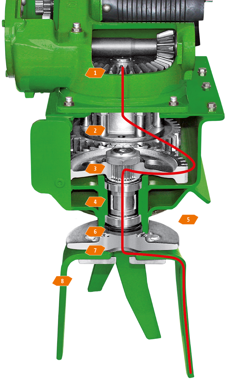 Long-Life-Drive ist das Antriebssystem, das bei den AMAZONE Kreiselgrubbern für lange Lebensdauer, maximale Laufruhe und hohen Wiederverkaufswert sorgt. Stirnräder und Lager laufen in einem Ölbad und sind damit wartungsfrei – keine Schmiernippel.