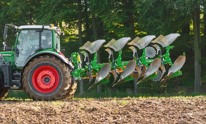 AutoAdapt – Automatische, exakte und hydraulische Anpassung der Vorderfurchenbreite bei stufenloser Arbeitsbreitenänderung. Auswahl an verschiedenen seitlich oder hinten montierten Stützrädern für einen guten Transport auf der Straße und sicheres und sauberes Arbeiten auf dem Feld.