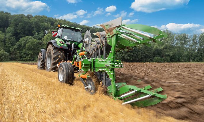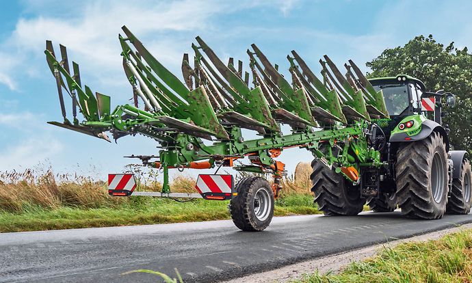 AutoAdapt – Automatische, exakte und hydraulische Anpassung der Vorderfurchenbreite bei stufenloser Arbeitsbreitenänderung. Auswahl an verschiedenen seitlich oder hinten montierten Stützrädern für einen guten Transport auf der Straße und sicheres und sauberes Arbeiten auf dem Feld.