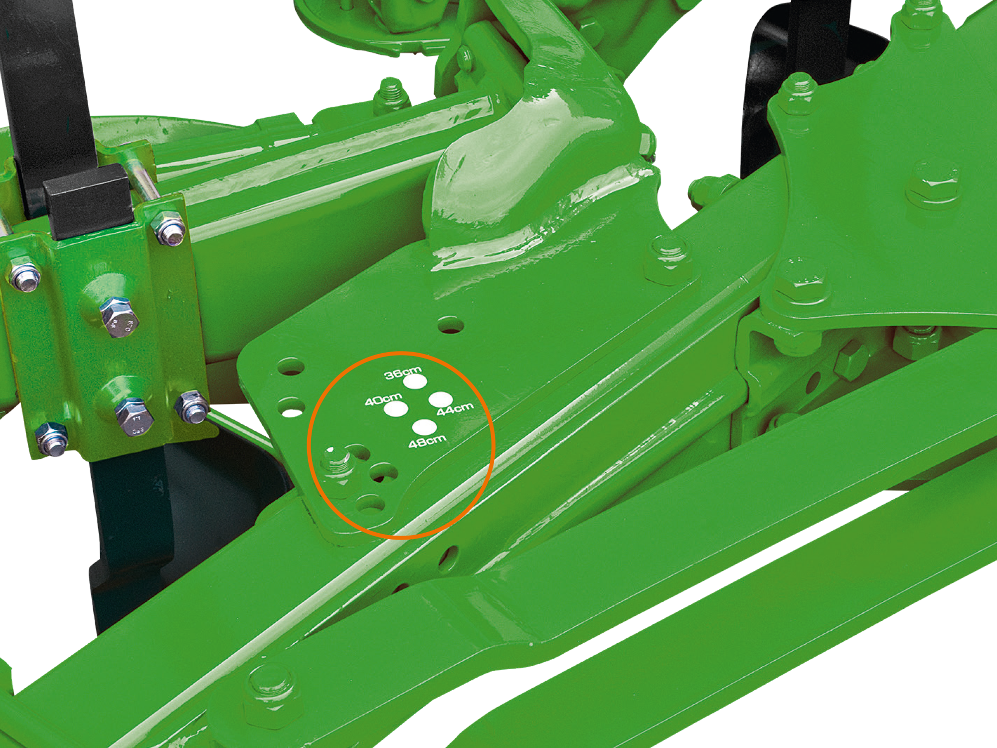 - Einfache Einstellung mit automatischer Anpassung von Vorderfurche, Zugpunkt und Zubehör beim Einstellen der Arbeitsbreite – keine manuelle Korrektur erforderlich