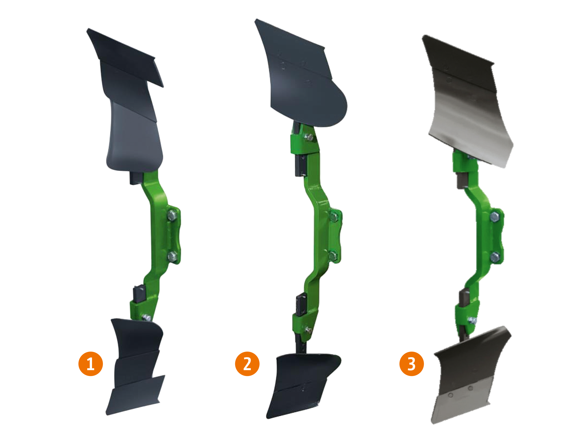 - Das System ist bei Pflügen mit Scherbolzen-Überlastsicherung zusätzlich in Fahrtrichtung einstellbar, sodass sehr viel Freiraum für einen hohen Durchgang zwischen Körper und Sech bleibt.