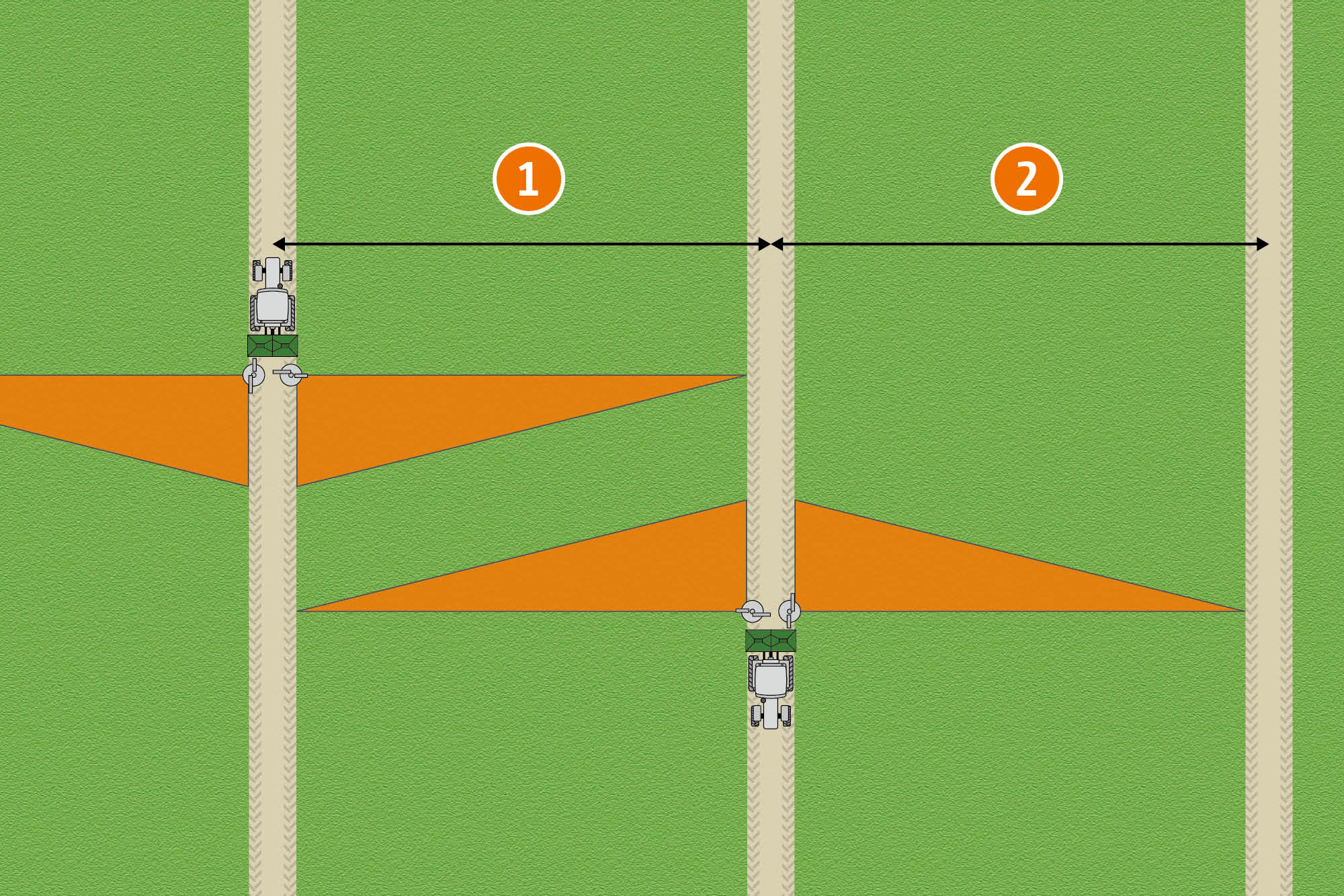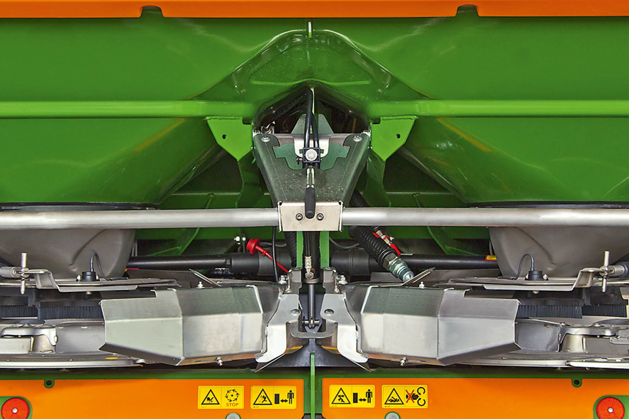 Für Kunden, die in einem Arbeitsgang gleich zwei unterschiedliche Mineraldünger akkurat ausbringen möchten, bietet AMAZONE die einzigartige Möglichkeit eines Front­anbau­streuers an. Anders als bei der Nutzung von Mischdüngern in einem Düngerstreuer, kann in dieser Variante jeder Streuer optimal auf die Eigenschaften des jeweiligen Düngers eingestellt werden. Auf diese Weise wird eine perfekte Querverteilung für beide Dünger erzielt. Auch das Streuen mit zwei verschiedenen Applikationskarten ist möglich.