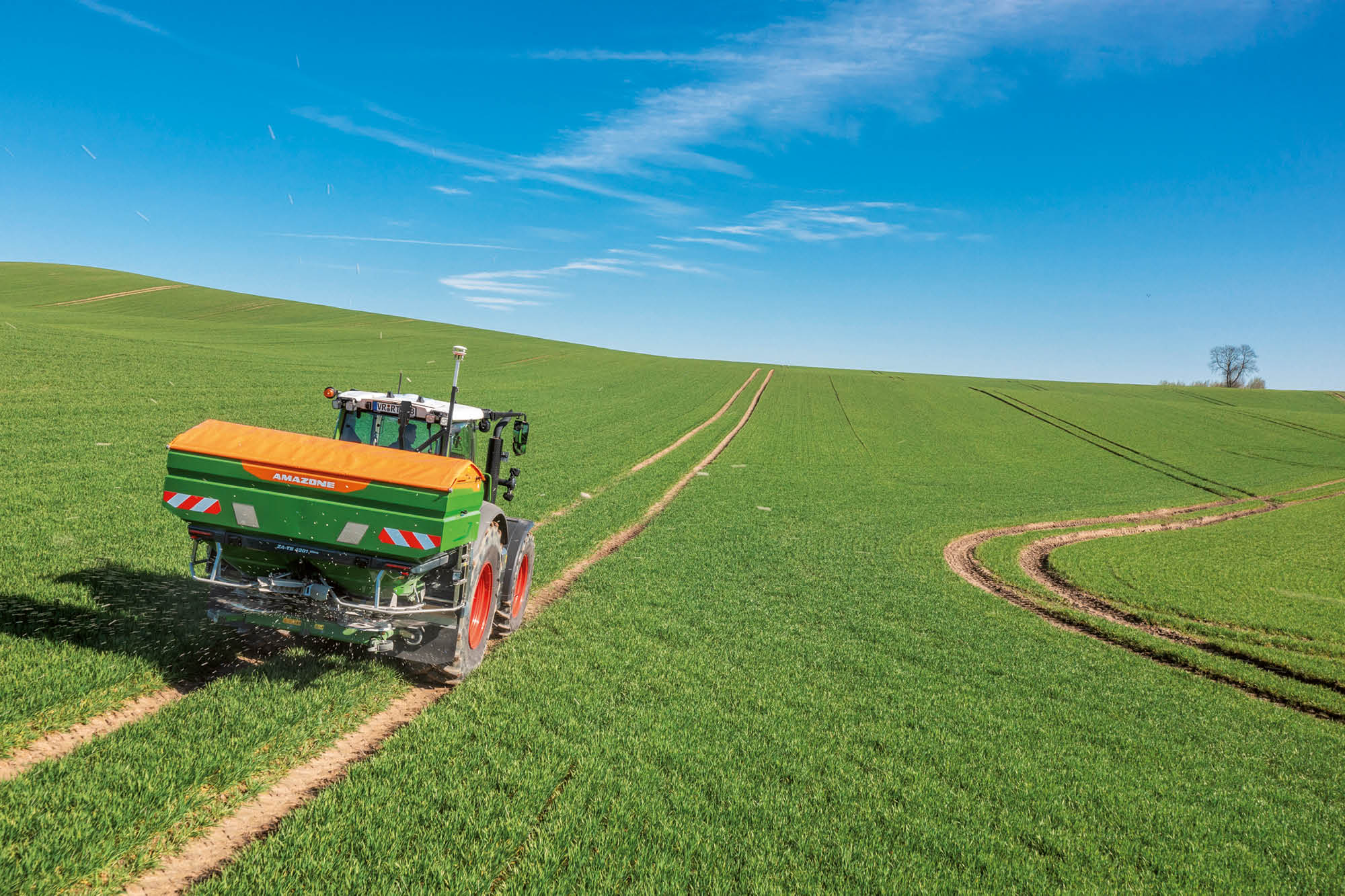 AutoSpread: Der sich autonom einstellende Düngerstreuer ZA-TS 01. Durch eine permanente Messung des realen Streubilds werden alle Streuparameter auf dem Acker automatisch angepasst und durch AI-basierte Algorithmen validiert. Die Verteilung des Düngers wird optimiert, die Kosten sinken und Umweltbelastungen vermieden.