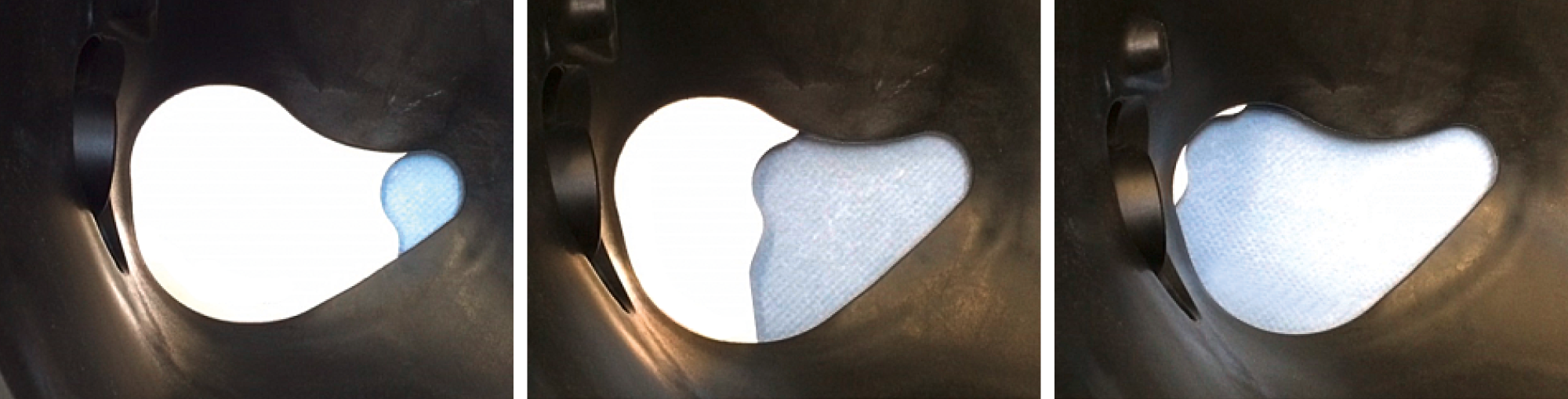 Speziell geformte Auslauföffnung mit automatischer Korrektur des Mengeneffekts