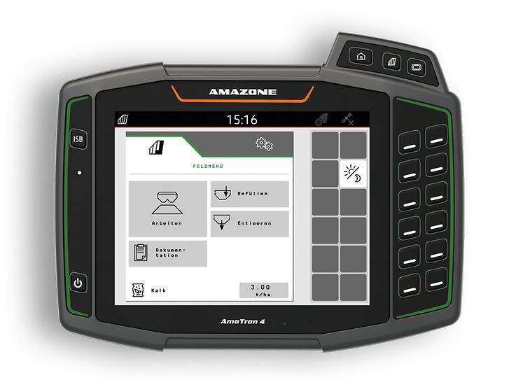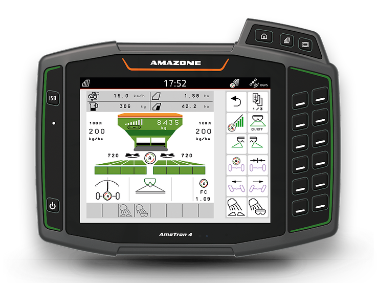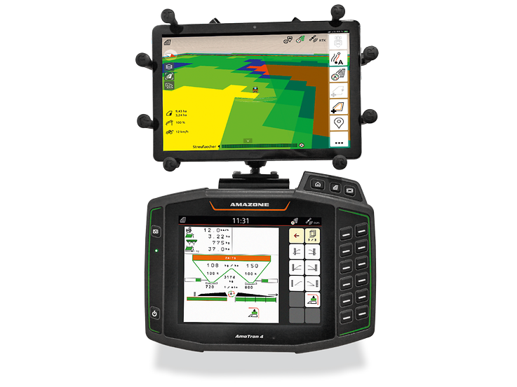 Das von AMAZONE selbstentwickelte ISOBUS-Bedienterminal AmaTron 4 erlaubt die komfortable Steuerung einer jeden ISOBUS-fähigen Landmaschine mit Touch-Bedienung. Das AmaTron 4 ermöglicht dabei alle ISOBUS-Funktionen – mit einem Mehr an Komfort, Bedienerfreundlichkeit und Übersicht. Und doch: Es leistet insbesondere im Zusammenspiel mit AMAZONE Landmaschinen noch mehr und garantiert volle Funktionalität der Präzisionslandwirtschaft.