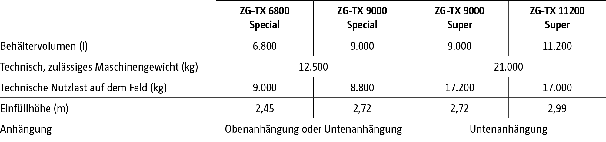 Dank der ausgeklügelten Behälterform des ZG-TX wird ein optimaler Behälterschwerpunkt geschaffen, der negativen Stützlasten praktischerweise entgegen wirkt. Die steilen Behälterwände ohne Ecken und Kanten garantieren ein optimales Nachrutschen, selbst bei erdfeuchtem Kalk. Am Boden des Behälters sorgt der wartungsfreie Bandboden mit automatischer Steuerung für eine zuverlässige Dosierung. Die Abdeckrollplane gibt die Behälteröffnung nahezu vollständig frei, was die Beladung maximal einfach macht.