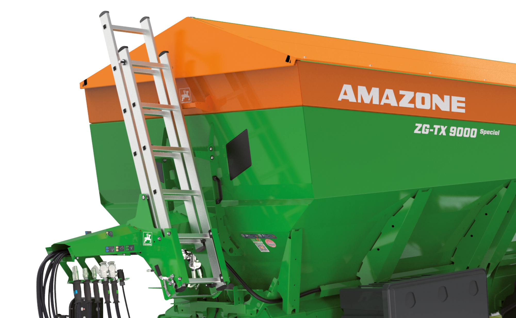 Über das große, gut erreichbare Podest kann das Befüllen optimal beobachtet werden. Weiterhin ist so ein sicherer Einstieg in den Behälter möglich. Mit dem praktischen Halter für einen Besen oder eine Schaufel ist das richtige Werkzeug immer schnell zur Hand. Optional kann nur eine Leiter ohne Podest verbaut werden.