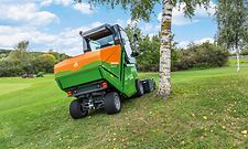 Hohe Flächenleistung durch große Arbeitsbreiten, großer Sammelgutbehälter und Kraftstofftank in Kombination mit hohen Transportgeschwindigkeiten und Arbeitsgeschwindigkeiten. Das Verstopfen des Mähwerks wird durch das Förderschneckensystem auch bei feuchtem Mähgut verhindert. Das schnelle Entladen von Mähgut per Hochkippentleerung reduziert ebenso Standzeiten.