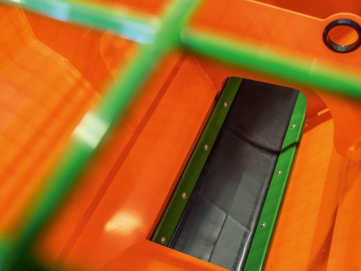 Für den langlebigen Einsatz im Winterdienst sind die wichtigsten Bauteile des IceTiger, wie z. B. die Präzisionsstreuscheibe, aus hochwertigem Edelstahl gefertigt. Um Korrosion durch aggressives Streugut zu verhindern, wird darüber hinaus eine spezielle Mehrschichtlackierung für die übrigen Bauteile verwendet.