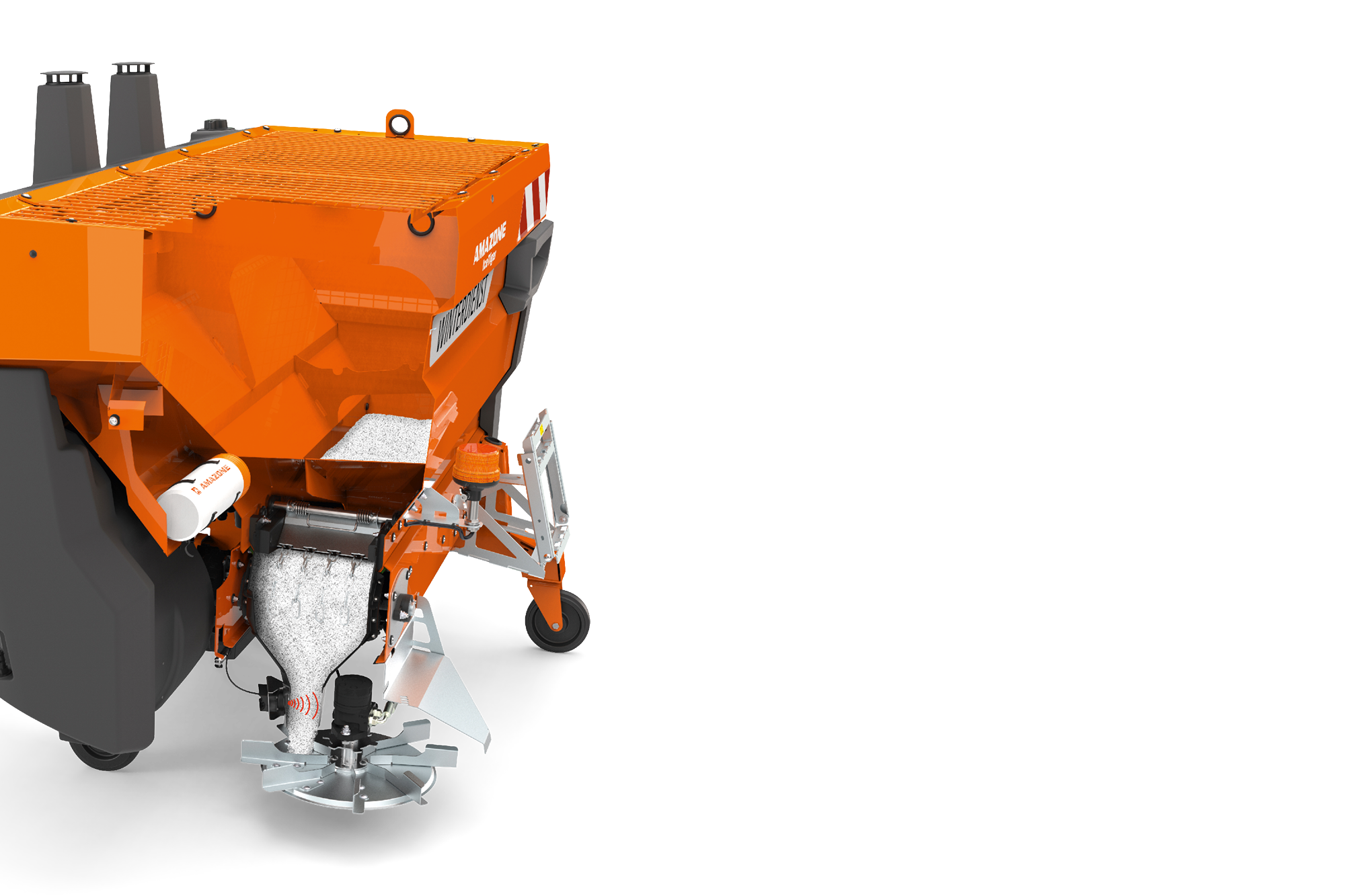 Der FlowCheck-Radarsensor für den ISOBUS-gesteuerten IceTiger mit einem Behältervolumen ab 1.000 l ermöglicht die frühzeitige Erkennung von Verstopfungen. Eine Meldung auf dem ISOBUS-Terminal zeigt dem Anwender sofort an, wenn z. B. durch Verwendung von zähem Feuchtsalz Verstopfungen entstanden sind.