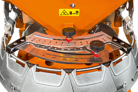 Dank einer variablen Einleitsystemverstellung kann der E+S symmetrisch und asymmetrisch streuen. Der Streufächer lässt sich sehr präzise und schnell über das SmartCenter, das komfortabel an der Streuerrückseite auf Höhe der Trichterspitze angeordnet ist, einstellen.
