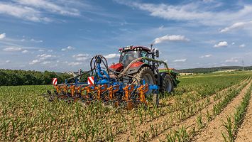 Neben der mechanischen Behandlung der Beikräuter in der Reihe gibt es zudem auch die Möglichkeit der Bandspritzung mit unserem in die Hacke integrierten RowSpray-Bandspritzsystem in Kombination mit dem AMAZONE Fronttank FT-P. Mit einem Verteilkopf auf der Hacke ist in Kombination mit dem AMAZONE FTender eine schlagkräftige Düngerausbringung direkt an der Kulturreihe oder auch die Aussaat einer Untersaat zwischen den Pflanzenreihen möglich. Durch die Kombination mit der Universal-Aufbausämaschine GreenDrill ist auch die Ausbringung von Zwischenfrüchten, Feinsaatgut und Mikrogranulat über Prallteller hinter den Hackaggregaten möglich.
