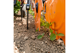 Beim Hacken gilt der Grundsatz „so früh wie möglich“. Demzufolge finden die ersten Hackeinsätze in kleinen Wachstumsstadien der Kultur statt. Gerade in frühen Wachstumsstadien sind die meisten Kulturen sehr empfindlich gegenüber Verschüttung durch Erde. Daher bieten wir bei AMAZONE unterschiedliche Verschüttungsschutzsysteme für diverse Kulturen und Reihenweiten an. Durch unseren aktiven Verschüttungsschutz lassen sich in den ersten Hackgängen 2 bis 3 Mal so hohe Arbeitsgeschwindigkeiten erreichen, im Vergleich zum Einsatz ohne Hackschutzscheiben.