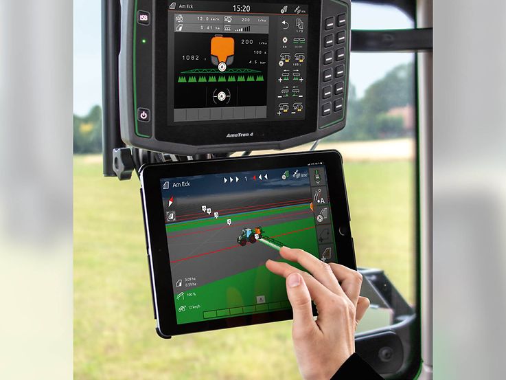 Über die App AmaTron Share, die über WLAN mit dem AmaTron 4 verbunden ist, können alle Daten bequem online übertragen werden. So können mit der App z. B. Applikationskarten einfach vom Büro auf das AmaTron 4 geschickt und abgearbeitet werden. Ebenso können Auftragsdaten nach der Arbeit als PDF-Dokumentation per Cloud, E-Mail oder Messenger-Diensten wie WhatsApp an die Kunden oder zurück ins Büro geschickt werden. Das ist komfortables Datenmanagement.