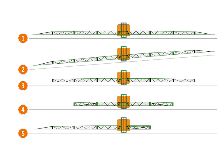 Von den Gestängen tropft keine Spritzflüssigkeit auf den Traktor oder das Bedienzentrum und das Gestänge berührt nicht die Traktorkabine.