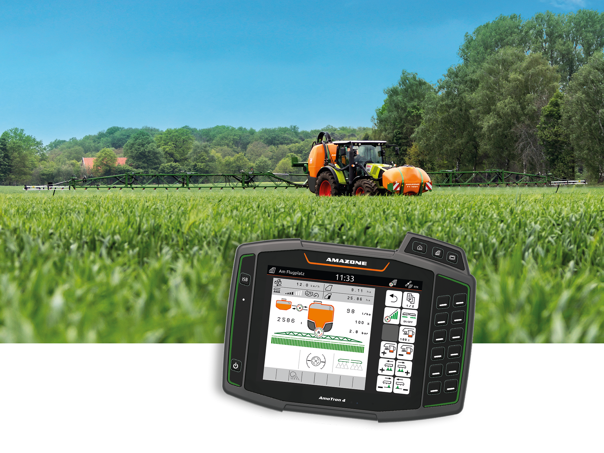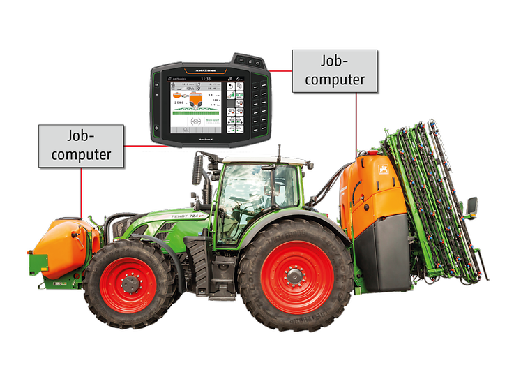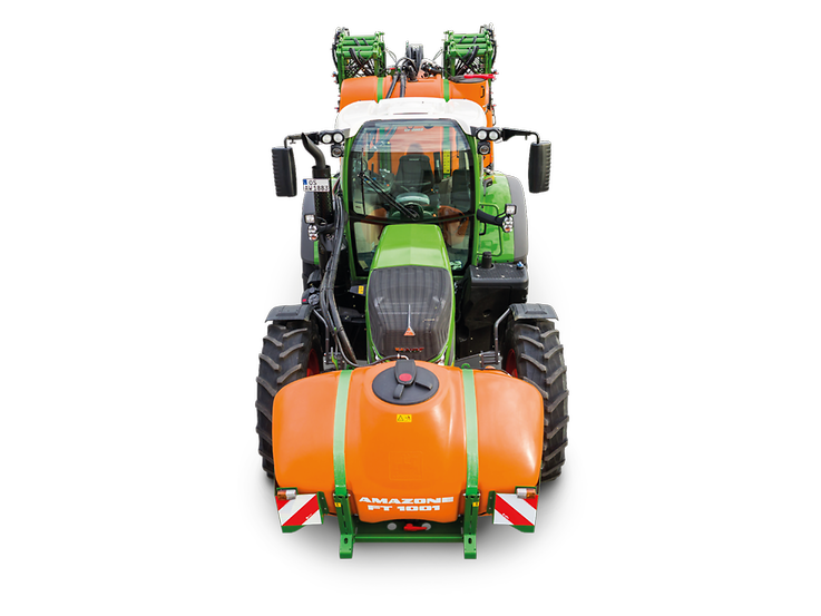 Das ISOBUS-Terminal steuert automatisch den Flüssigkeitskreislauf, so dass immer eine optimale Gewichtsverteilung herrscht. Eine zu frühe Entlastung der Vorderachse wird verhindert. Abhängig vom Füllstand wird aus dem Fronttank rechtzeitig neue Spritzflüssigkeit gefördert, damit die Anbauspritze niemals vor dem Fronttank leer wird. Die Spritzflüssigkeit bleibt dabei immer homogen.