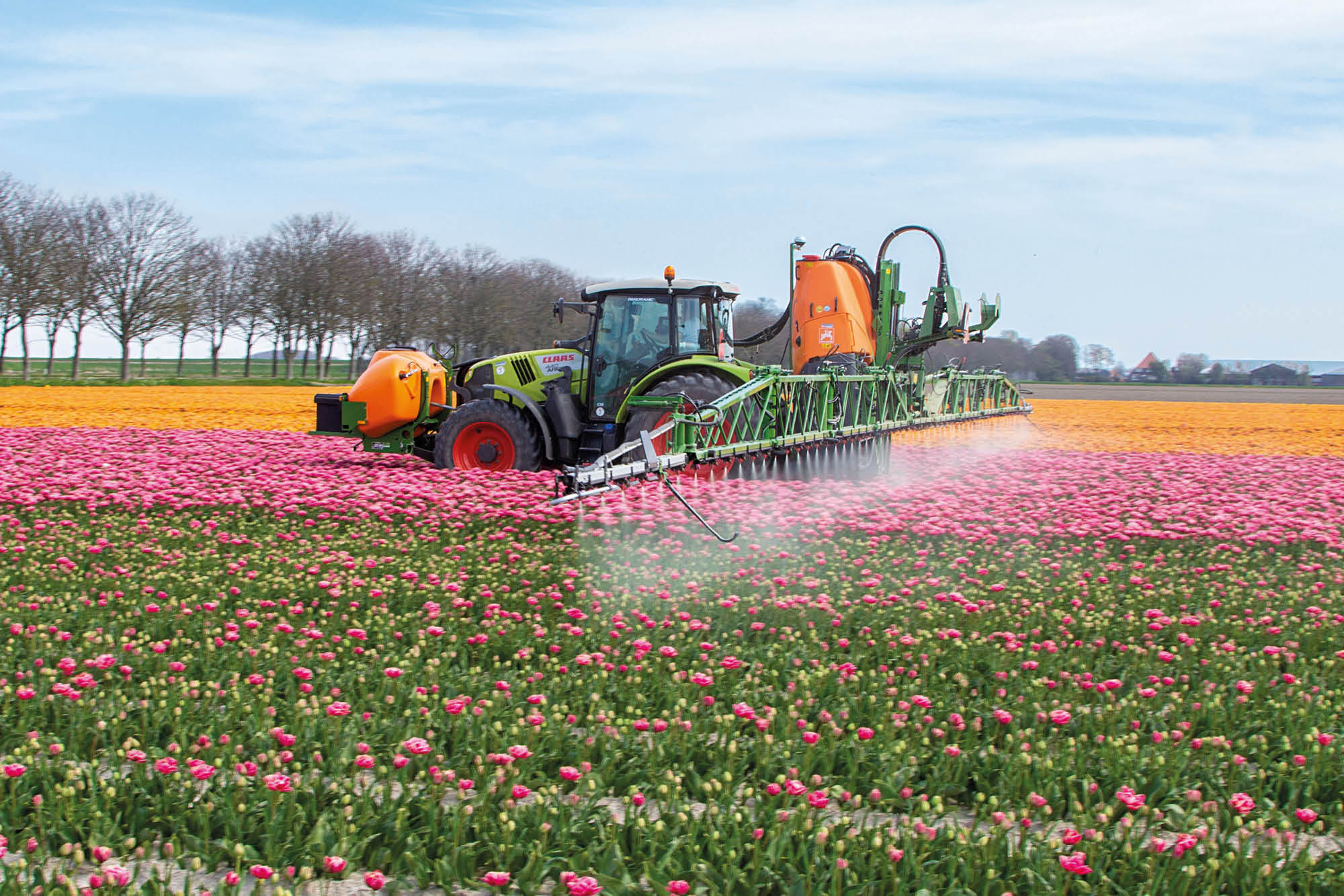 … leuchten in Nordholland riesige Tulpenfelder. Für den zielgerichteten Pflanzenschutz setzt der Tulpenbauer Siem Munster dafür auf eine Anbauspritze UF 2002 und ein Fronttank FT 1001. Besonders wichtig für die Arbeit im Tulpenbestand sind hierfür die Kernmerkmale des Gespanns: schlagkräftig, komfortabel, kompakt und präzise!