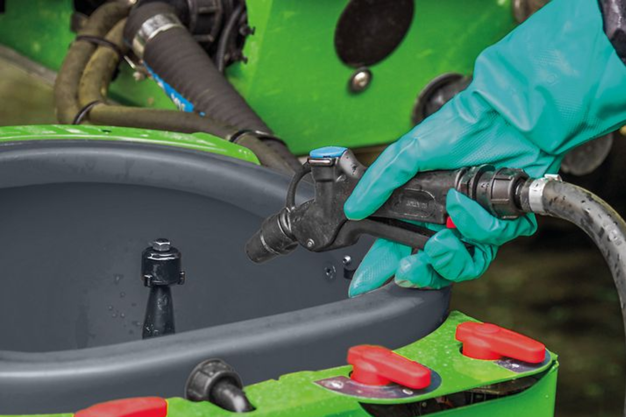 - Über eine optionale Spülwasserpumpe kann der Einspülbehälter auch während der Druckbefüllung mit Spülwasser versorgt werden