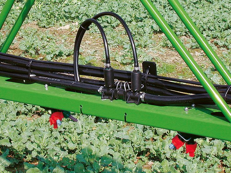 Beim Abschalten einzelner Teilbreiten, bei Wendevorgängen oder während des Transports bleibt die Spritzflüssigkeit dank der Druckregelung kontinuierlich in Zirkulation. So lassen sich Ablagerungen, Verstopfungen oder Entmischungen in den Spritzleitungen sicher verhindern.
