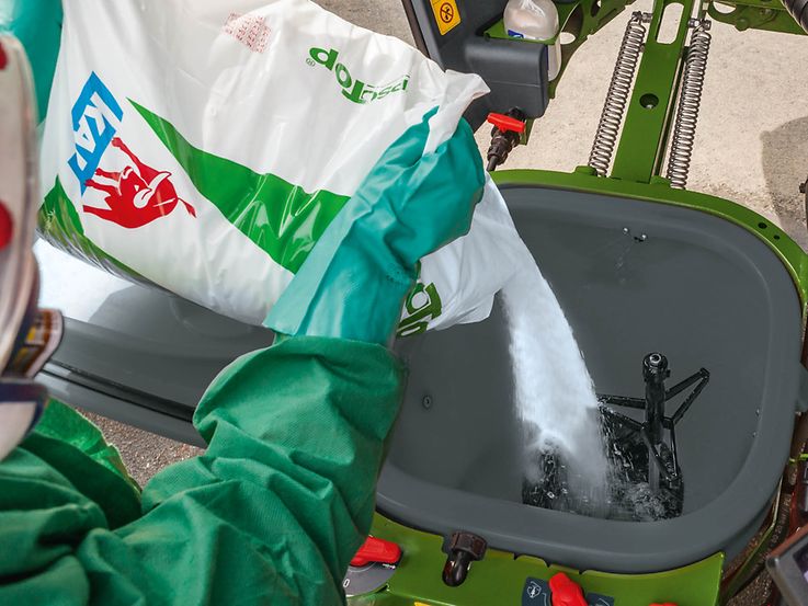 - Stufenlos einstellbare Mischdüse – zur Verhinderung von Verstopfungen bei pulver- und granulatförmigen Mitteln