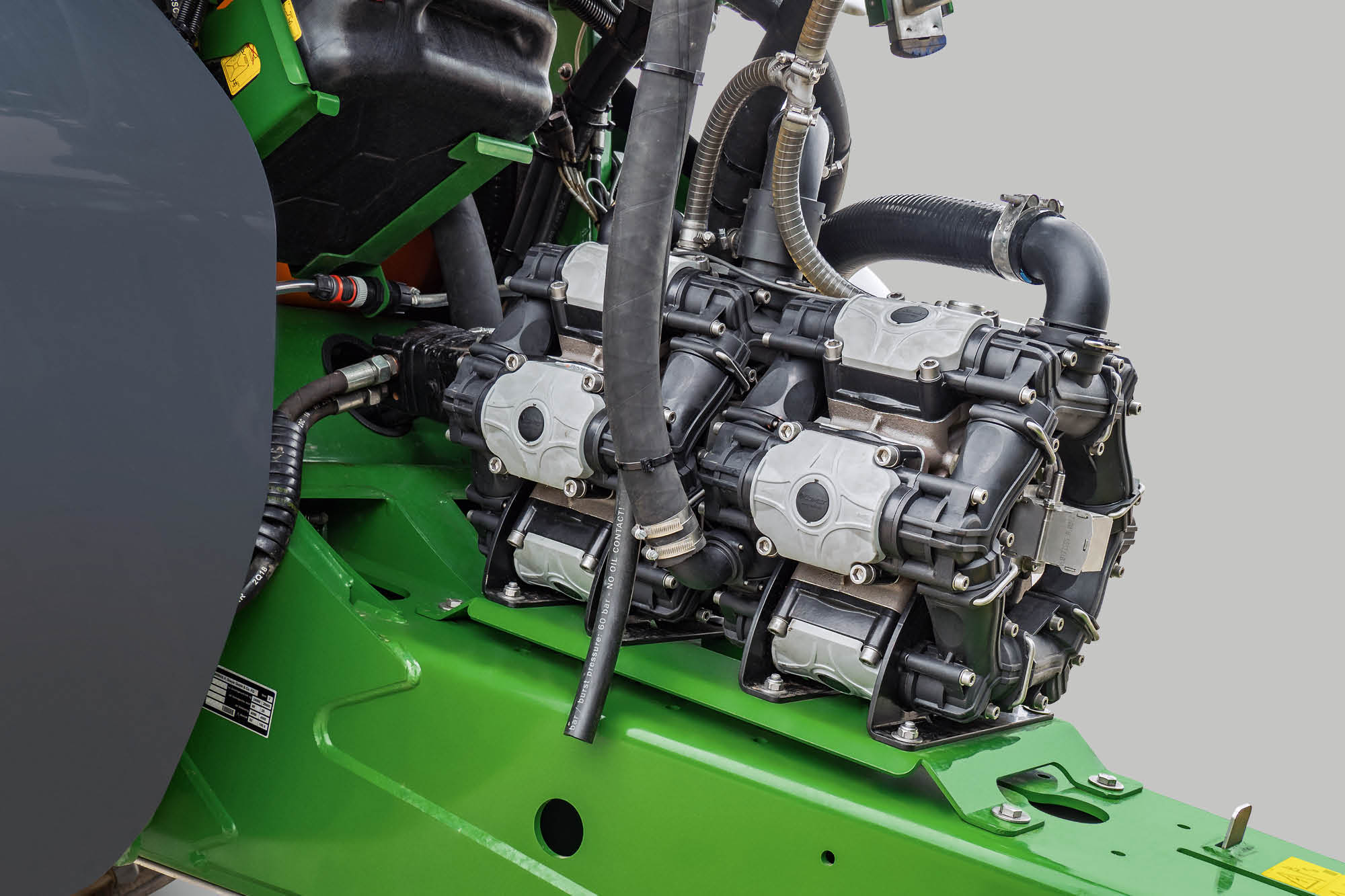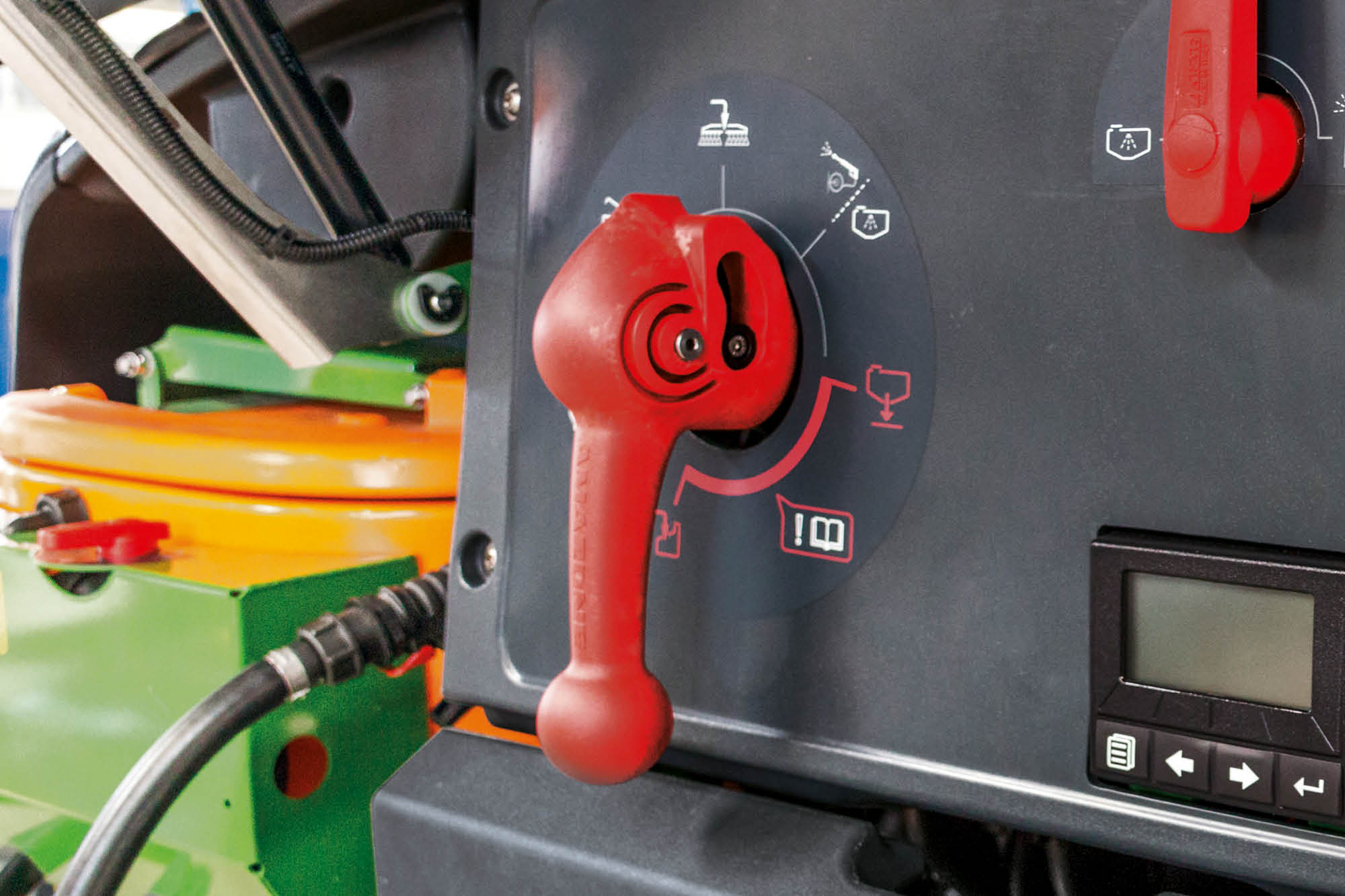 Besonders komfortabel ist die Bedienung mit dem Comfort-Paket plus. Anstelle der Bedienhähne erleichtert das TwinTerminal 7.0 mit Touchscreen die Maschinenbedienung um ein Vielfaches. Die Bedienung des Spritzflüssigkeitskreislaufs erfolgt ausschließlich über den drucksensitiven Touchscreen, der auch bei Benutzung von Handschuhen einwandfrei funktioniert. Der Anwender wählt nur noch die gewünschte Funktion aus und die Spritze stellt sich automatisch ein.