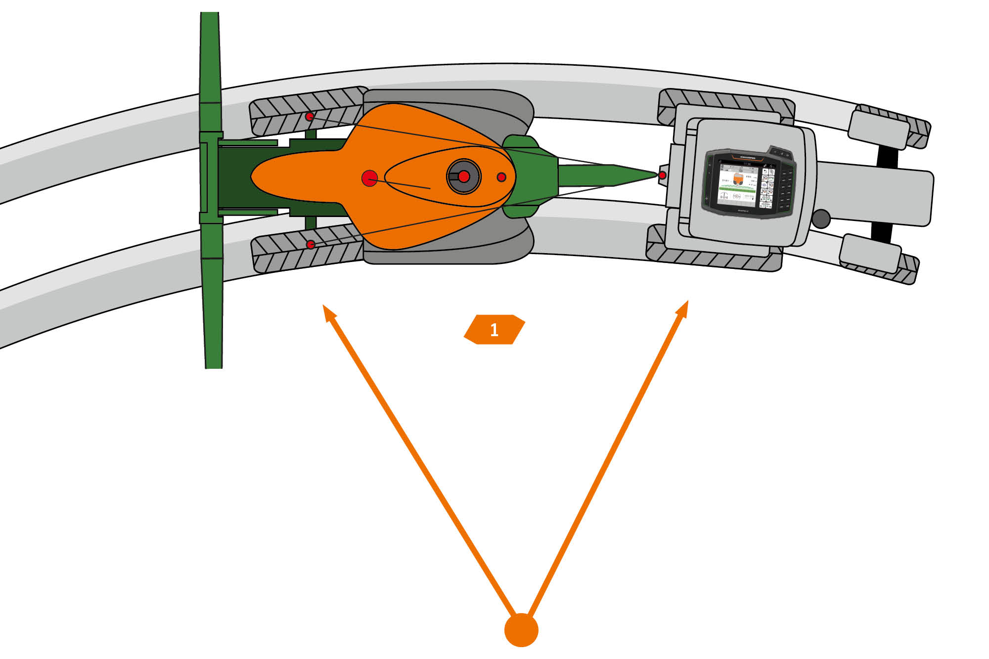 Serienmäßig verfügt die AutoTrail-Lenkung der UX Super über eine vollautomatische Hangsteuerung. Da die Hangsteuerung je nach Geländeposition ggf. angepasst werden muss, ist die Einstellung der Intensität über den Multifunktionsgriff jederzeit möglich.