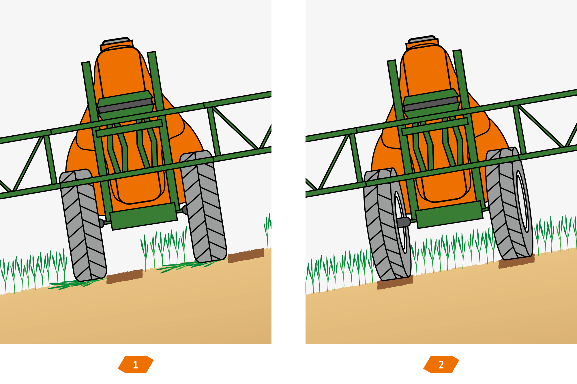 „Lenken die Räder im Feld ein, wird kaum Lenkenergie auf das Gestänge übertragen. Dabei ist die Lenkung im Feld ständig aktiviert – auch bei geraden Feldspuren. Lenkt der Schlepper, so lenken auch die Räder der Spritze sofort. Wie ruhig das vonstatten geht, konnten wir im Einsatz sehen. Egal ob wir schnell oder langsam fuhren, beim Einlenken wackelte am Gestänge nichts.“ („dlz agrarmagazin” – Fahrbericht „Sicher in der Spur“ · 06/2011)