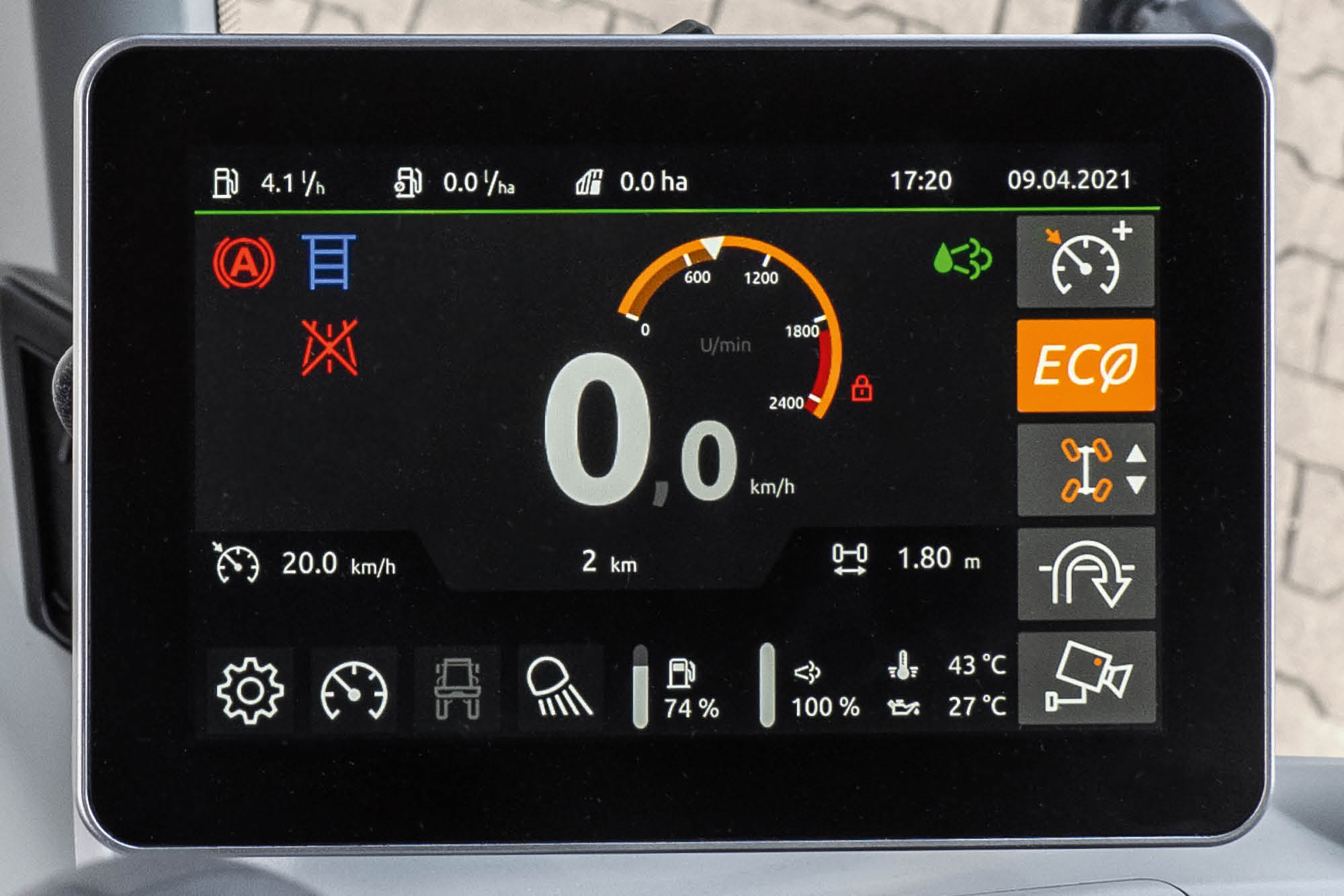 - Modernstes Kraftstoff-Management auf der Straße und im Feld mit ECO- und POWER-Modus