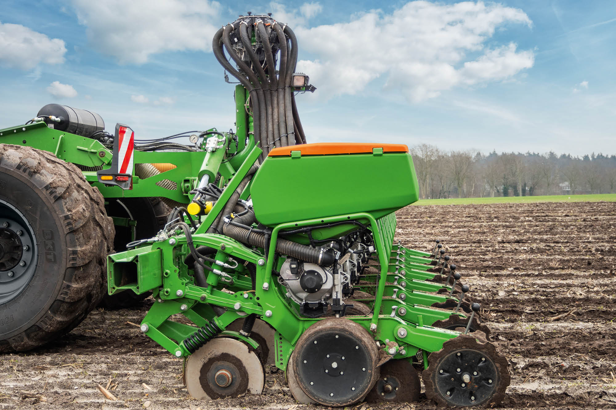 Bei dem elektrischen Antrieb ElectricDrive wird jede Überdruckvereinzelung separat über einen Elektromotor angetrieben. So kann die gewünschte Saatmenge sehr komfortabel über das Terminal eingestellt werden. Ein Aktivierungstaster je Säaggregat gewährt zudem eine Prüfung der Vereinzelungsscheibe.