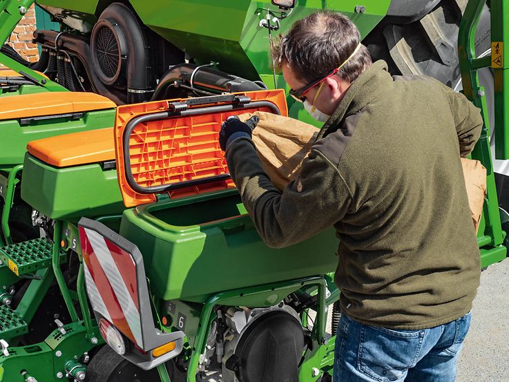 Denn: Die Saatgutvereinzelung der Precea-TCC kann innerhalb kürzester Zeit mit unterschiedlichen Vereinzelungsscheiben werkzeuglos umgerüstet werden.